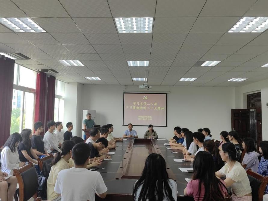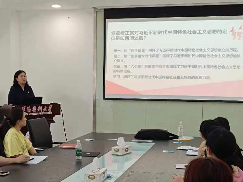 6月20日下午在科研楼504,麻醉医公司党委副书记叶栋恒围绕党章中对习近平新时代中国特色社会主义思想的定位详细解读了党章建设史和党的二十大对党章作出的修改,为党员更好理解党章的精神实质、把握党章一系列规定要求提供了参考。PA视讯教工党支部副书记张宇结合自身科研求学经历对开展主题教育的意义和要求,对推动党和国家事业发展,具有重要意义方面进行了深入解读。