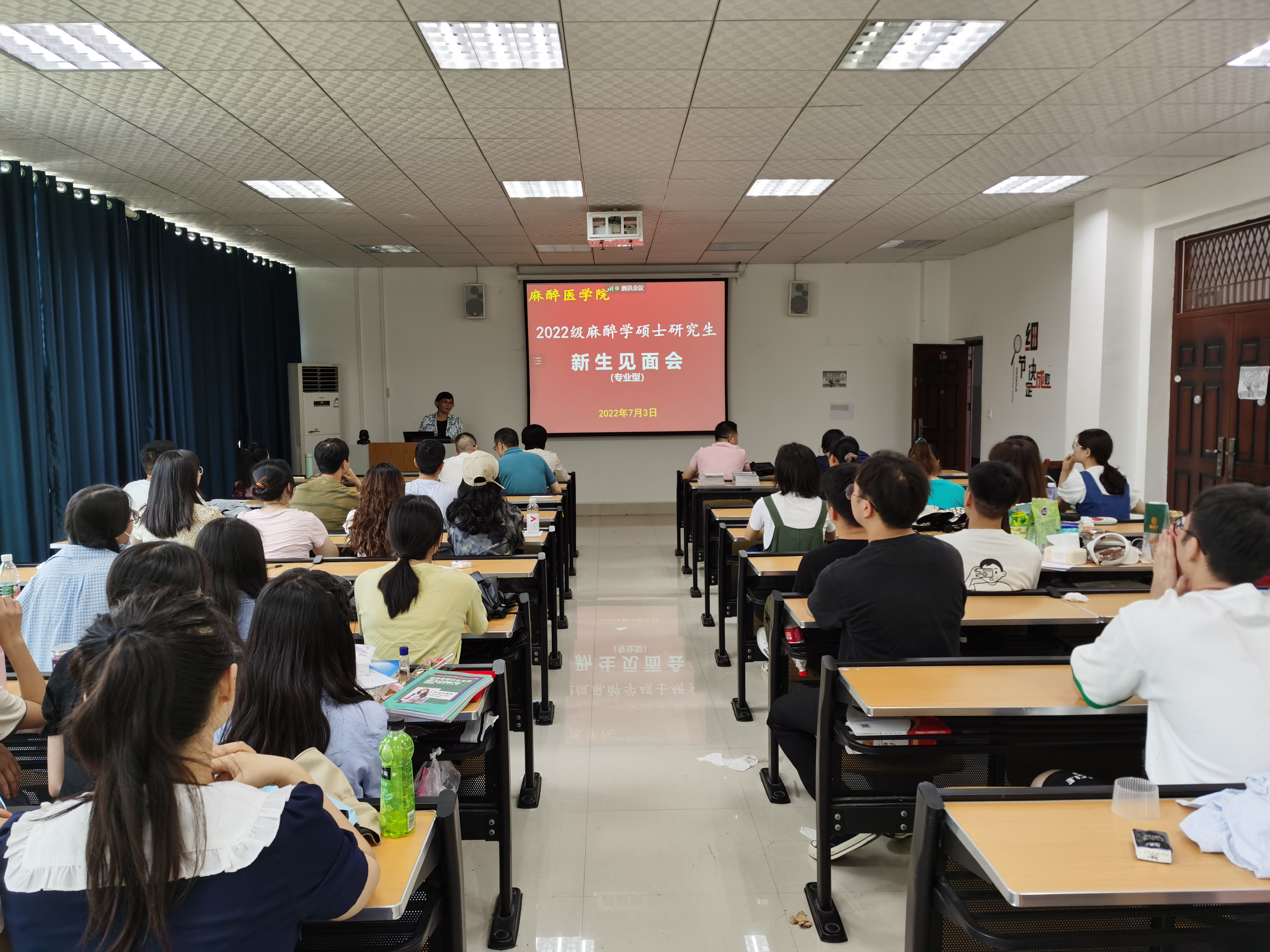 7月3日,PA视讯在新蒲校区2号实验楼麻醉示教室召开了2022级麻醉学专业型硕士研究生新生见面会。会议由副经理张红教授主持,PA视讯副经理王海英教授、麻醉学学科带头人朱昭琼教授、部分专业型研究生导师以及青年导师参加;联合培养单位贵州省人民医院、六盘水市人民医院、毕节市第一人民医院、兴义市人民医院导师,三位第二导师通过腾讯会议线上参会。