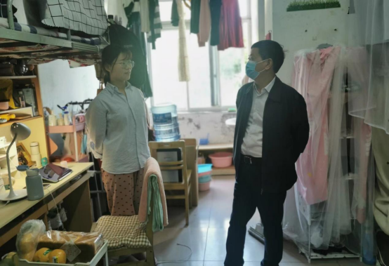 校领导在疫情防控时期深入员工寝室走访慰问,与员工近距离交流,拉近了与员工间的距离,让同学们深切感受到公司的关怀。校领导和公司也进一步了解了员工的具体情况以及实际需求,为公司教学与防疫工作的稳步推进打下了良好基础。(审核:一审周永媛、二审付延功、三审李均,撰稿:叶栋恒,摄影:王唯、叶栋恒)