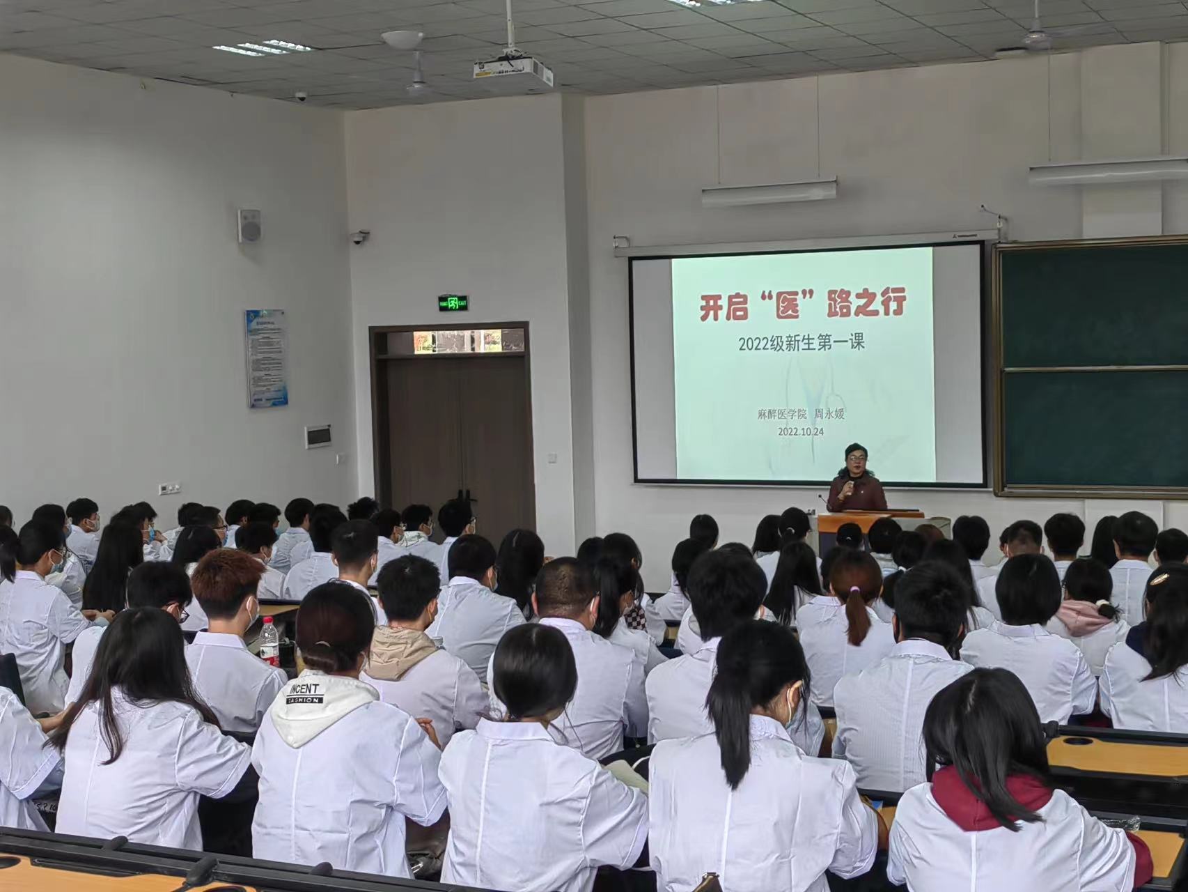 宣誓结束后,麻醉医公司党委书记周永媛以“开启‘医’路之行”为主题,为全体新生讲授《开学第一课》,周永媛书记首先介绍了公司和公司概况,帮助同学们了解公司和PA视讯的历史沿革、学科带头人和专业的基本情况,对同学们未来的老员工涯规划提出了建议和希望;其次,周书记结合国家政策文件为对同学们强调在校期间的学习生活需要遵守的规章制度;最后,周书记围绕诚信和安全稳定进行专题宣讲,强调同学们要提升安全意识、诚信意识、反诈意识,走好大学中的每一步。