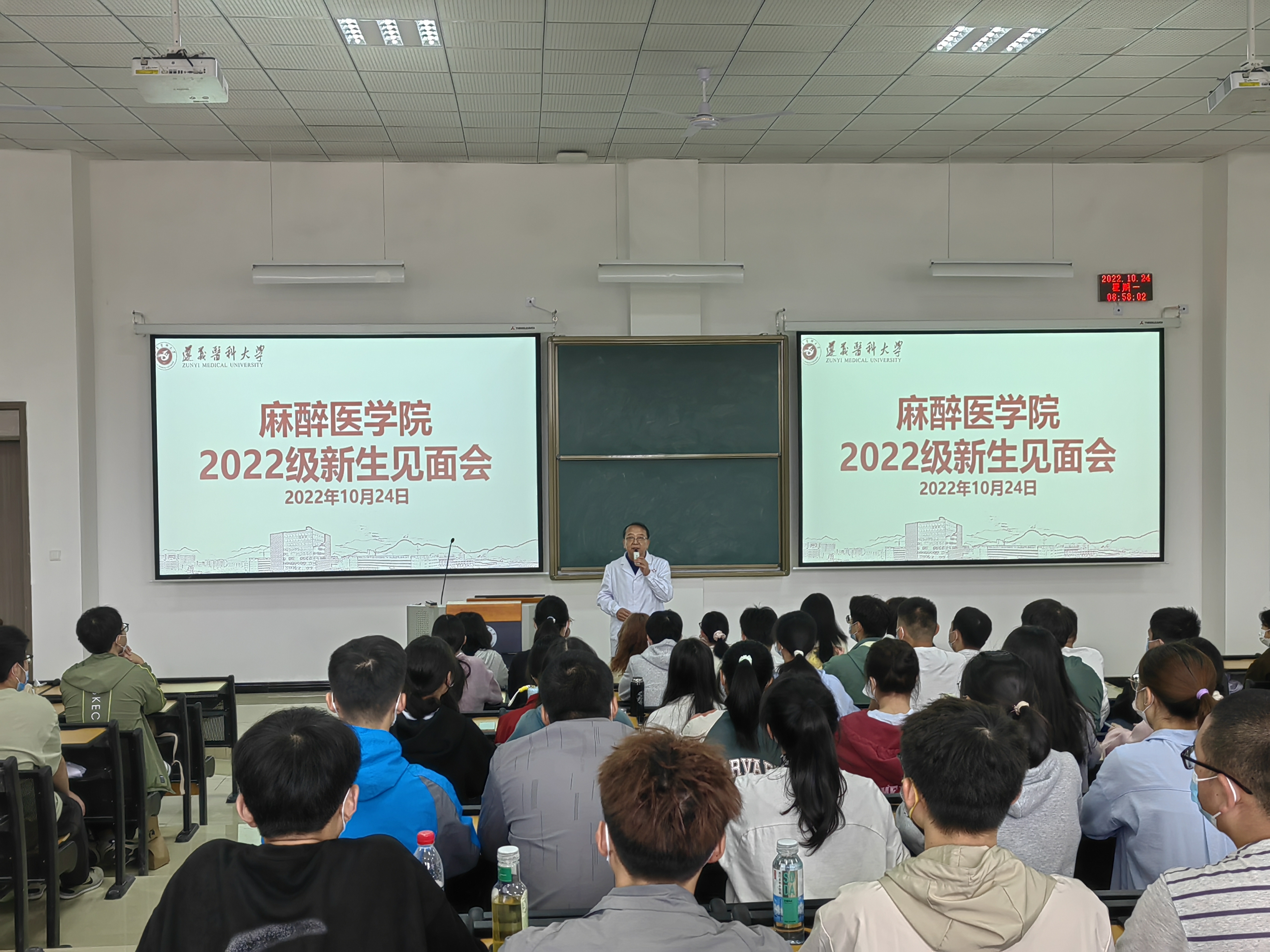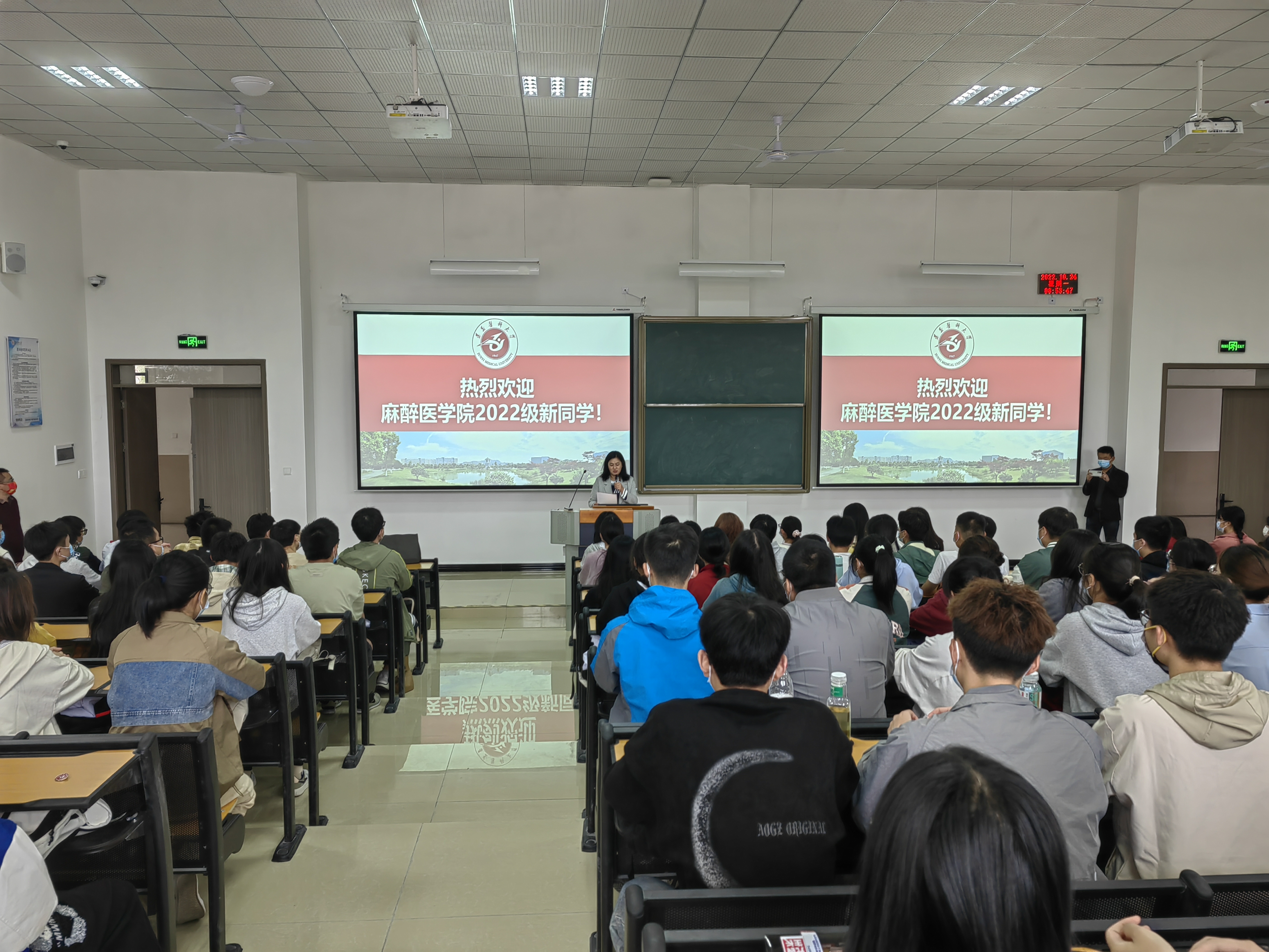 10月24日上午,2022级本科新生见面会暨开学第一课在二十阶梯顺利召开,麻醉医公司党委书记周永媛、经理刘兴奎、员工第二党支部书记陈俊、员工第一党支部副书记韦锋、办公室负责人张超、辅导员王唯及2022级PA视讯全体本科新生参加。见面会由麻醉医公司党委副书记叶栋恒主持。